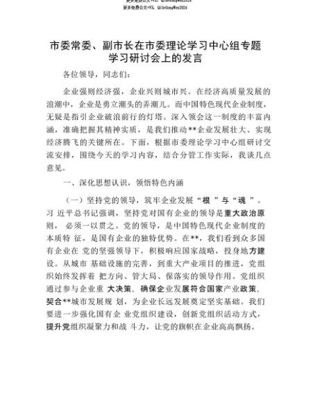 【七哥公文】2025年:【七哥公文】市委常委、副市长在市委理论学习中心组专题学习研讨会上的发言+更多免费公文+VX:QiGeGongWen2024+更多免费公文+VX:QiGeGongWen2024