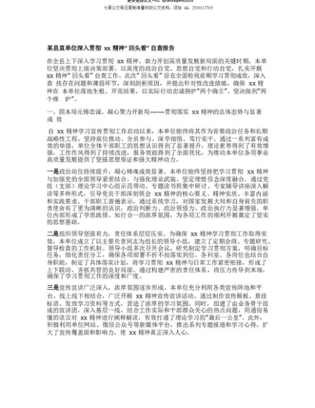 【七哥公文】2025年:【七哥公文】某县直单位深入贯彻xx精神“回头看”自查报告+更多免费公文+VX:QiGeGongWen2024+更多免费公文+VX:QiGeGongWen2024