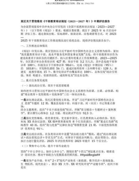 【七哥公文】2025年:【七哥公文】某区关于贯彻落实《干部教育培训规划(2023-2027年)》中期评估报告+更多免费公文+VX:QiGeGongWen2024+更多免费公文+VX:QiGeGongWen2024