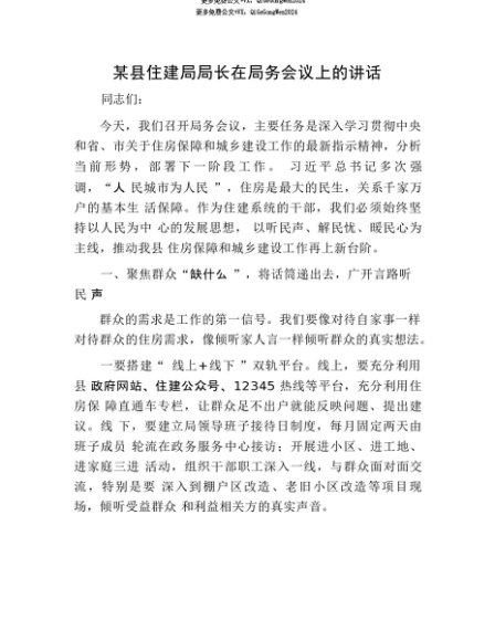 【七哥公文】2025年:【七哥公文】某县住建局局长在局务会议上的讲话+更多免费公文+VX:QiGeGongWen2024+更多免费公文+VX:QiGeGongWen2024
