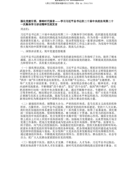 【七哥公文】2025年:【七哥公文】强化X建引领,奏响时代强音——学习习近平总书记在二十届中央ZZ局第二十一次集体学习讲话精神交流发言+更多免费公文+VX:QiGeGongWen2024+更多免费公文+VX:QiGeGongWen2024