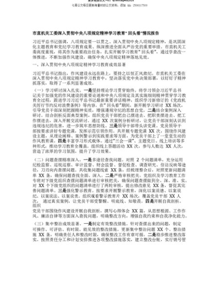 【七哥公文】2025年:【七哥公文】市直机关工委深入贯彻中央BXGD精神学习教育“回头看”情况报告+更多免费公文+VX:QiGeGongWen2024+更多免费公文+VX:QiGeGongWen2024