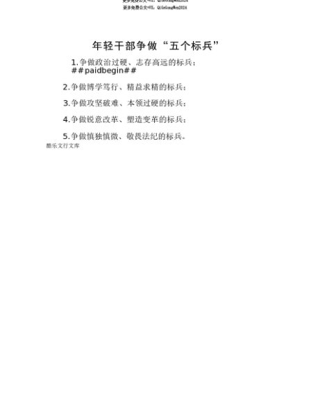 【七哥公文】2025年:【七哥公文】年轻干部争做“五个标兵”+更多免费公文+VX:QiGeGongWen2024+更多免费公文+VX:QiGeGongWen2024