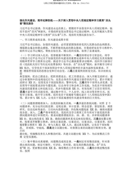 【七哥公文】2025年:【七哥公文】强化作风建设,筑牢纪律防线——关于深入贯彻中央BXGD精神学习教育“回头看”情况报告+更多免费公文+VX:QiGeGongWen2024+更多免费公文+VX:QiGeGongWen2024