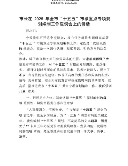 【七哥公文】2025年:【七哥公文】市长在2025年全市“十五五”市级重点专项规划编制工作座谈会上的讲话+更多免费公文+VX:QiGeGongWen2024+更多免费公文+VX:QiGeGongWen2024