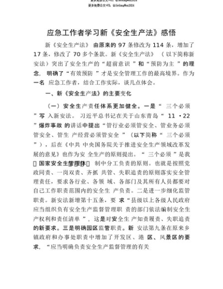 【七哥公文】2025年:【七哥公文】应急工作者学习新《安全生产法》感悟+更多免费公文+VX:QiGeGongWen2024+更多免费公文+VX:QiGeGongWen2024