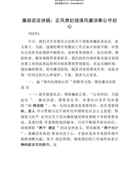 【七哥公文】2025年:【七哥公文】廉政谈话讲稿:正风肃纪扬清风 廉洁奉公守初心+更多免费公文+VX:QiGeGongWen2024+更多免费公文+VX:QiGeGongWen2024
