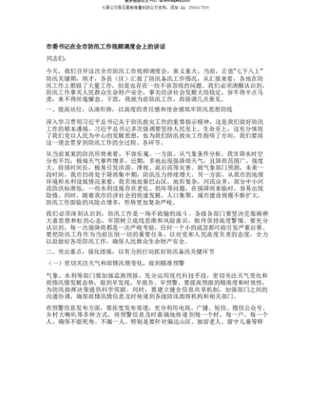 【七哥公文】2025年:【七哥公文】市委书记在全市防汛工作视频调度会上的讲话+更多免费公文+VX:QiGeGongWen2024+更多免费公文+VX:QiGeGongWen2024