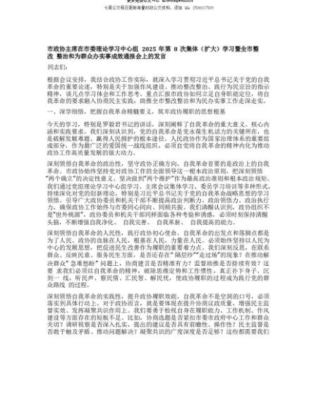 【七哥公文】2025年:【七哥公文】市政协主席在市委理论学习中心组2025年第8次集体(扩大)学习暨全市整改整治和为群众办实事成效通报会上的发言+更多免费公文+VX:QiGeGongWen2024+更多免费公文+VX:QiGeGongWen2024