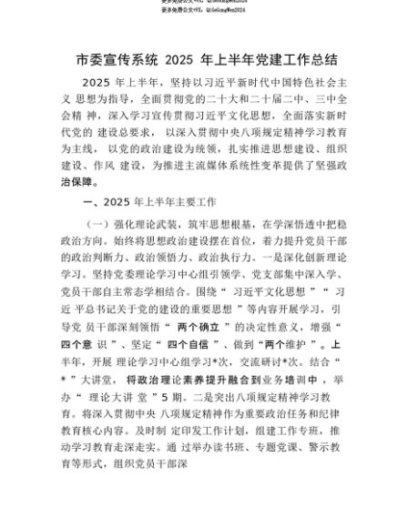 【七哥公文】2025年:【七哥公文】市委宣传系统2025年上半年X建工作总结+更多免费公文+VX:QiGeGongWen2024+更多免费公文+VX:QiGeGongWen2024