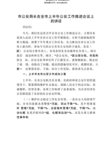 【七哥公文】2025年:【七哥公文】市公安局长在全市上半年公安工作推进会议上的讲话+更多免费公文+VX:QiGeGongWen2024+更多免费公文+VX:QiGeGongWen2024