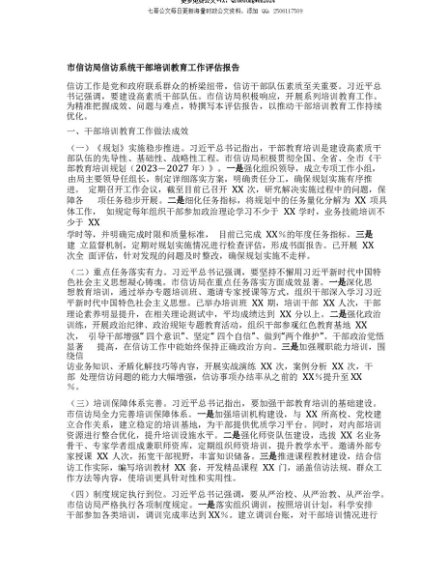 【七哥公文】2025年:【七哥公文】市信访局信访系统干部培训教育工作评估报告+更多免费公文+VX:QiGeGongWen2024+更多免费公文+VX:QiGeGongWen2024