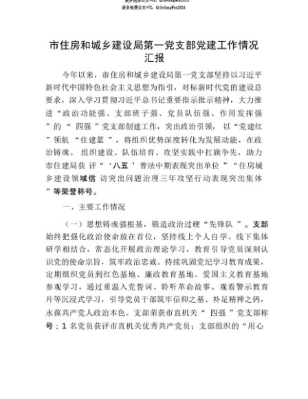 【七哥公文】2025年:【七哥公文】市住房和城乡建设局第一X支部X建工作情况汇报+更多免费公文+VX:QiGeGongWen2024+更多免费公文+VX:QiGeGongWen2024