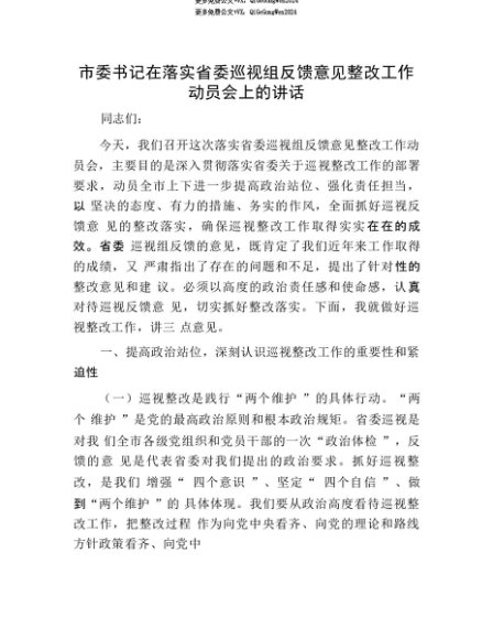 【七哥公文】2025年:【七哥公文】市委书记在落实省委巡视组反馈意见整改工作动员会上的讲话+更多免费公文+VX:QiGeGongWen2024+更多免费公文+VX:QiGeGongWen2024