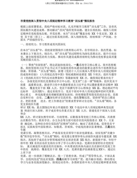 【七哥公文】2025年:【七哥公文】市委X校深入贯彻中央BXGD精神学习教育“回头看”情况报告+更多免费公文+VX:QiGeGongWen2024+更多免费公文+VX:QiGeGongWen2024
