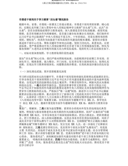 【七哥公文】2025年:【七哥公文】市委老干部局关于学习教育“回头看”情况报告+更多免费公文+VX:QiGeGongWen2024+更多免费公文+VX:QiGeGongWen2024