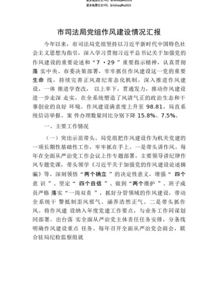 【七哥公文】2025年:【七哥公文】市司法局X组作风建设情况汇报+更多免费公文+VX:QiGeGongWen2024+更多免费公文+VX:QiGeGongWen2024