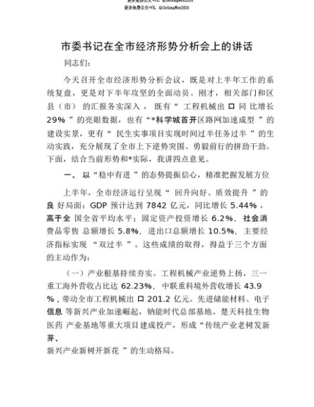 【七哥公文】2025年:【七哥公文】市委书记在全市经济形势分析会上的讲话+更多免费公文+VX:QiGeGongWen2024+更多免费公文+VX:QiGeGongWen2024