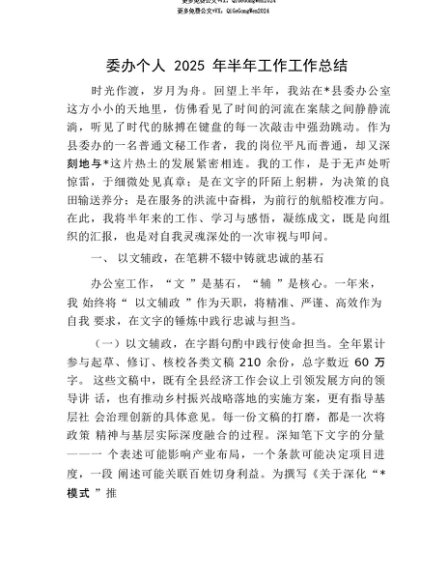 【七哥公文】2025年:【七哥公文】委办个人2025年半年工作工作总结+更多免费公文+VX:QiGeGongWen2024+更多免费公文+VX:QiGeGongWen2024