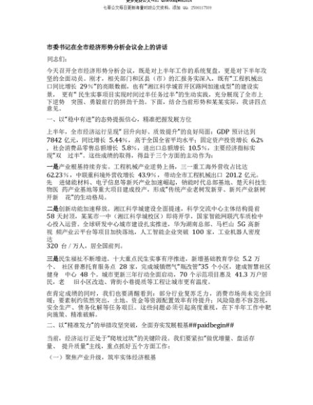 【七哥公文】2025年:【七哥公文】市委书记在全市经济形势分析会议会上的讲话+更多免费公文+VX:QiGeGongWen2024+更多免费公文+VX:QiGeGongWen2024
