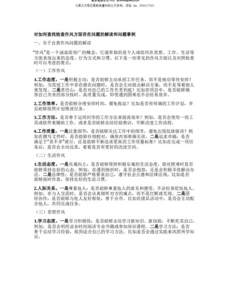 【七哥公文】2025年:【七哥公文】对如何查找检查作风方面存在问题的解读和问题事例+更多免费公文+VX:QiGeGongWen2024+更多免费公文+VX:QiGeGongWen2024