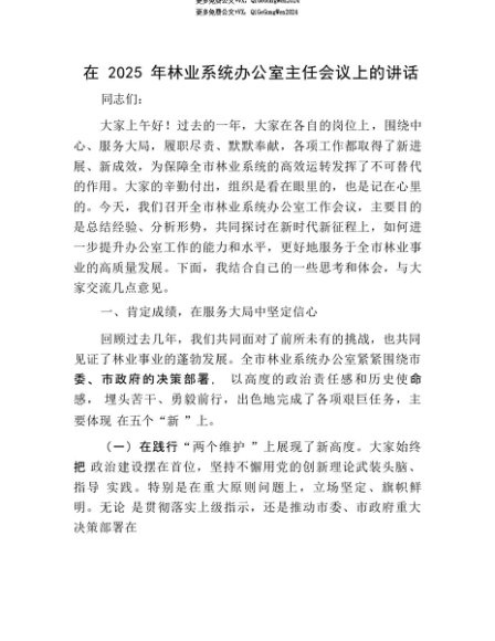 【七哥公文】2025年:【七哥公文】在2025年林业系统办公室主任会议上的讲话+更多免费公文+VX:QiGeGongWen2024+更多免费公文+VX:QiGeGongWen2024