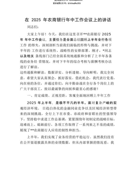 【七哥公文】2025年:【七哥公文】在2025年农商银行年中工作会议上的讲话+更多免费公文+VX:QiGeGongWen2024+更多免费公文+VX:QiGeGongWen2024