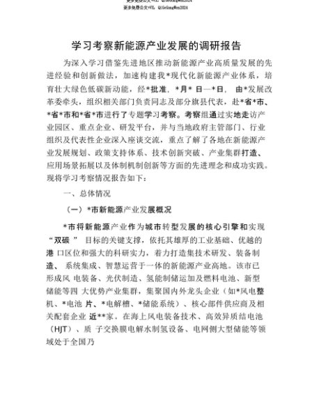 【七哥公文】2025年:【七哥公文】学习考察新能源产业发展的调研报告+更多免费公文+VX:QiGeGongWen2024+更多免费公文+VX:QiGeGongWen2024