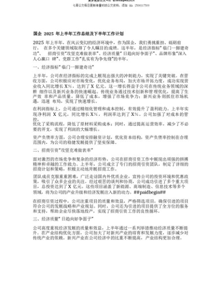 【七哥公文】2025年:【七哥公文】国企2025年上半年工作总结及下半年工作计划+更多免费公文+VX:QiGeGongWen2024+更多免费公文+VX:QiGeGongWen2024