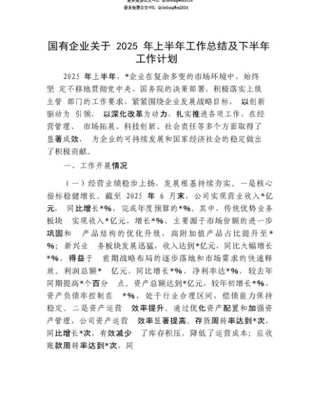 【七哥公文】2025年:【七哥公文】国有企业关于2025年上半年工作总结及下半年工作计划+更多免费公文+VX:QiGeGongWen2024+更多免费公文+VX:QiGeGongWen2024