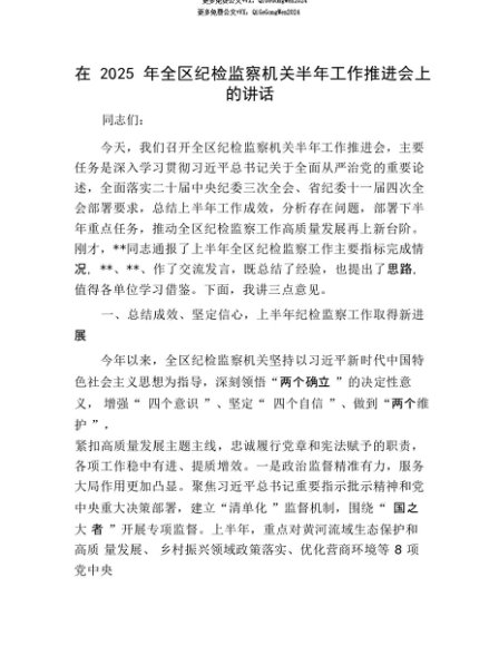 【七哥公文】2025年:【七哥公文】在2025年全区纪检监察机关半年工作推进会上的讲话+更多免费公文+VX:QiGeGongWen2024+更多免费公文+VX:QiGeGongWen2024