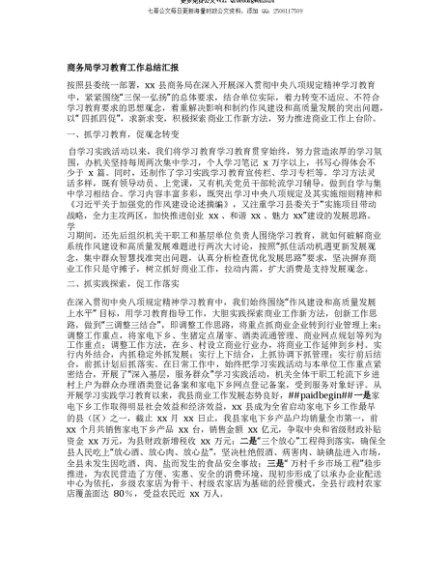 【七哥公文】2025年:【七哥公文】商务局学习教育工作总结汇报+更多免费公文+VX:QiGeGongWen2024+更多免费公文+VX:QiGeGongWen2024