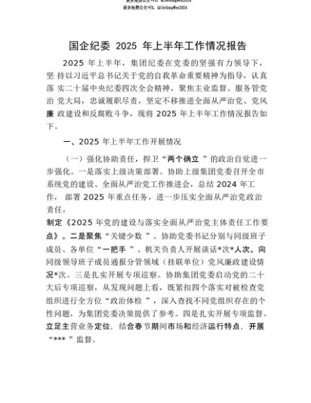 【七哥公文】2025年:【七哥公文】国企纪委2025年上半年工作情况报告+更多免费公文+VX:QiGeGongWen2024+更多免费公文+VX:QiGeGongWen2024