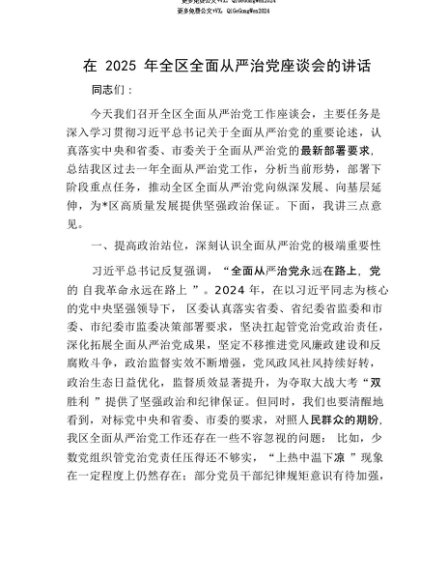 【七哥公文】2025年:【七哥公文】在2025年全区全面从严治X座谈会的讲话+更多免费公文+VX:QiGeGongWen2024+更多免费公文+VX:QiGeGongWen2024