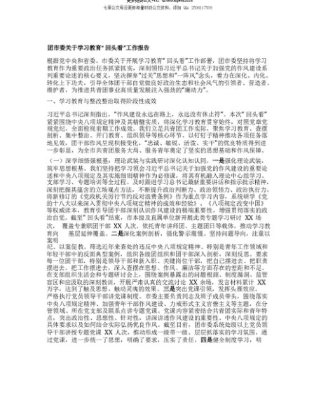 【七哥公文】2025年:【七哥公文】团市委关于学习教育“回头看”工作报告+更多免费公文+VX:QiGeGongWen2024+更多免费公文+VX:QiGeGongWen2024