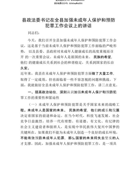 【七哥公文】2025年:【七哥公文】县政法委书记在全县加强未成年人保护和预防犯罪工作会议上的讲话+更多免费公文+VX:QiGeGongWen2024+更多免费公文+VX:QiGeGongWen2024