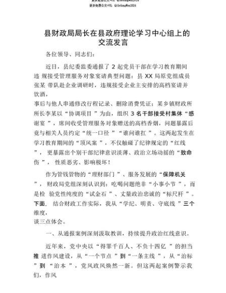 【七哥公文】2025年:【七哥公文】县财政局局长在县政府理论学习中心组上的交流发言+更多免费公文+VX:QiGeGongWen2024+更多免费公文+VX:QiGeGongWen2024