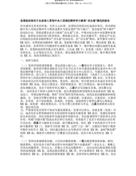 【七哥公文】2025年:【七哥公文】县委组织部关于全县深入贯彻中央BXGD精神学习教育“回头看”情况的报告+更多免费公文+VX:QiGeGongWen2024+更多免费公文+VX:QiGeGongWen2024