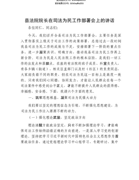 【七哥公文】2025年:【七哥公文】县法院院长在司法为民工作部署会上的讲话+更多免费公文+VX:QiGeGongWen2024+更多免费公文+VX:QiGeGongWen2024
