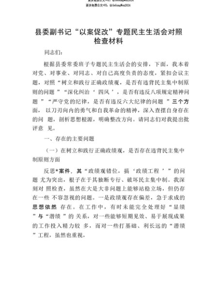 【七哥公文】2025年:【七哥公文】县委副书记“以案促改”专题民主生活会对照检查材料+更多免费公文+VX:QiGeGongWen2024+更多免费公文+VX:QiGeGongWen2024