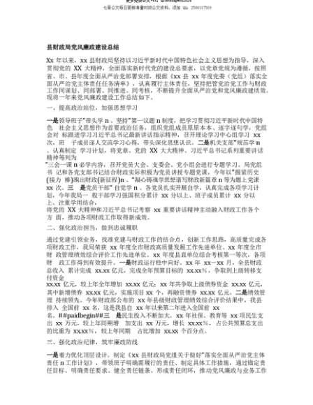 【七哥公文】2025年:【七哥公文】县财政局X风廉政建设总结+更多免费公文+VX:QiGeGongWen2024+更多免费公文+VX:QiGeGongWen2024