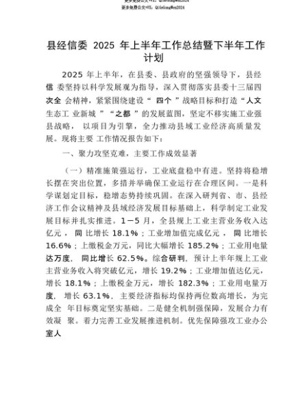 【七哥公文】2025年:【七哥公文】县经信委2025年上半年工作总结暨下半年工作计划+更多免费公文+VX:QiGeGongWen2024+更多免费公文+VX:QiGeGongWen2024