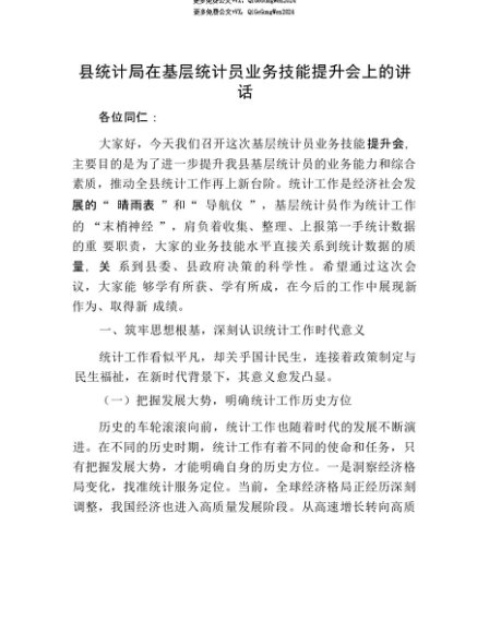 【七哥公文】2025年:【七哥公文】县统计局在基层统计员业务技能提升会上的讲话+更多免费公文+VX:QiGeGongWen2024+更多免费公文+VX:QiGeGongWen2024