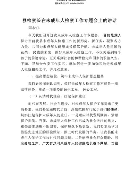 【七哥公文】2025年:【七哥公文】县检察长在未成年人检察工作专题会上的讲话+更多免费公文+VX:QiGeGongWen2024+更多免费公文+VX:QiGeGongWen2024
