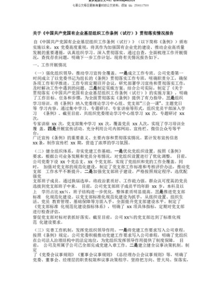 【七哥公文】2025年:【七哥公文】关于《中国共产X国有企业基层组织工作条例(试行)》贯彻落实情况报告+更多免费公文+VX:QiGeGongWen2024+更多免费公文+VX:QiGeGongWen2024
