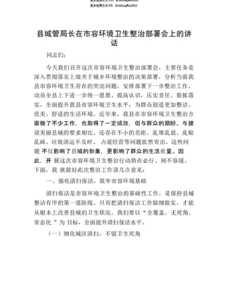 【七哥公文】2025年:【七哥公文】县XX局长在市容环境卫生整治部署会上的讲话+更多免费公文+VX:QiGeGongWen2024+更多免费公文+VX:QiGeGongWen2024
