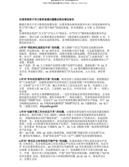 【七哥公文】2025年:【七哥公文】区委常委班子学习教育查摆问题整改落实情况报告+更多免费公文+VX:QiGeGongWen2024+更多免费公文+VX:QiGeGongWen2024