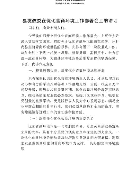 【七哥公文】2025年:【七哥公文】县发改委在优化营商环境工作部署会上的讲话+更多免费公文+VX:QiGeGongWen2024+更多免费公文+VX:QiGeGongWen2024