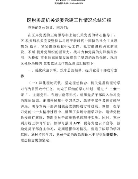 【七哥公文】2025年:【七哥公文】区税务局机关X委X建工作情况总结汇报+更多免费公文+VX:QiGeGongWen2024+更多免费公文+VX:QiGeGongWen2024