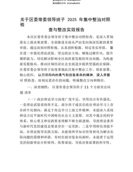 【七哥公文】2025年:【七哥公文】关于区委常委领导班子2025年集中整治对照检查与整改实效报告+更多免费公文+VX:QiGeGongWen2024+更多免费公文+VX:QiGeGongWen2024